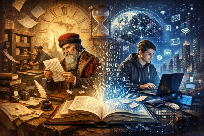 É tentador — e ao mesmo tempo revelador — comparar a invenção de Gutenberg com a criação da internet. Em ambos os casos, uma nova tecnologia de comunicação transformou radicalmente a forma como o conhecimento é produzido, distribuído e consumido. Em ambos os casos, a democratização do acesso à informação trouxe tanto oportunidades imensas quanto desafios imprevistos.